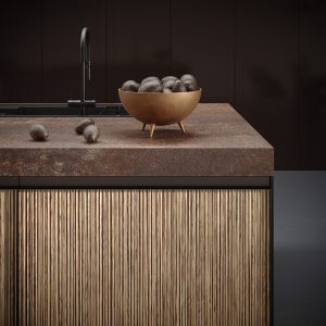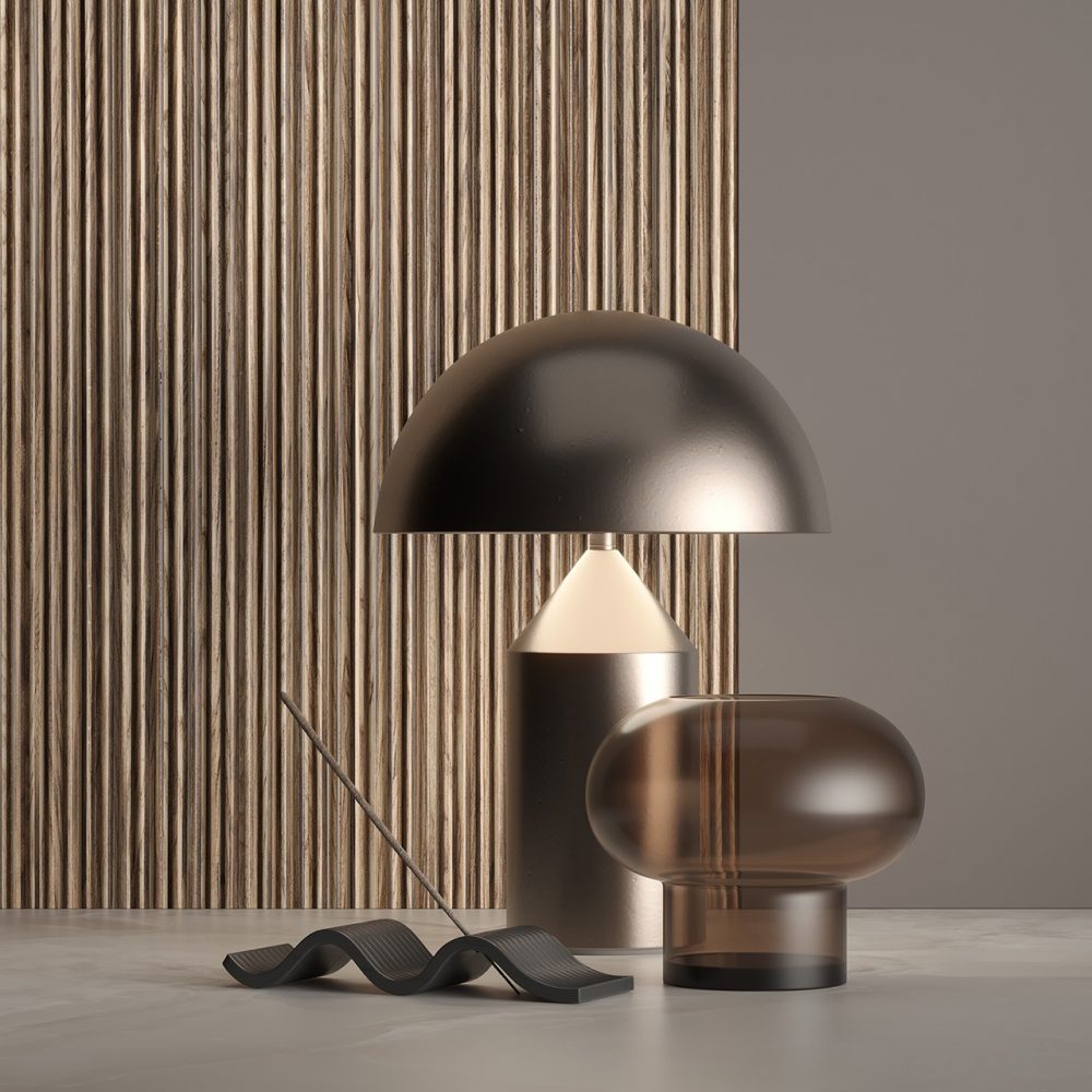 Inspired by the Piedmontese reed beds along the Tanaro River, this design emphasizes the contrast of dark and light, showcasing the unique charm of a ribbed surface.