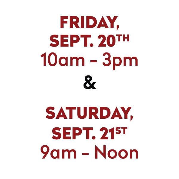 Don’t miss our 2-day warehouse sale at our Burlington location on Friday, September 20th at 10am to 3pm