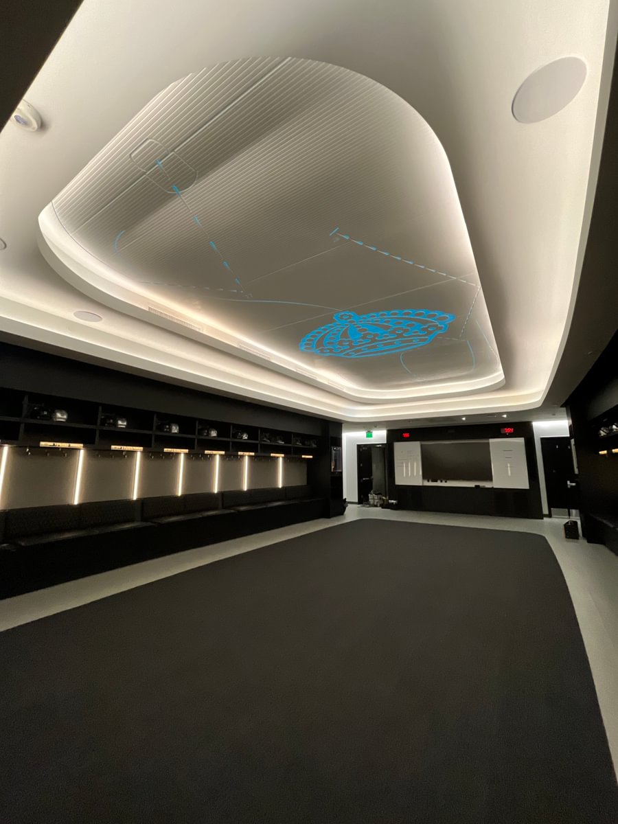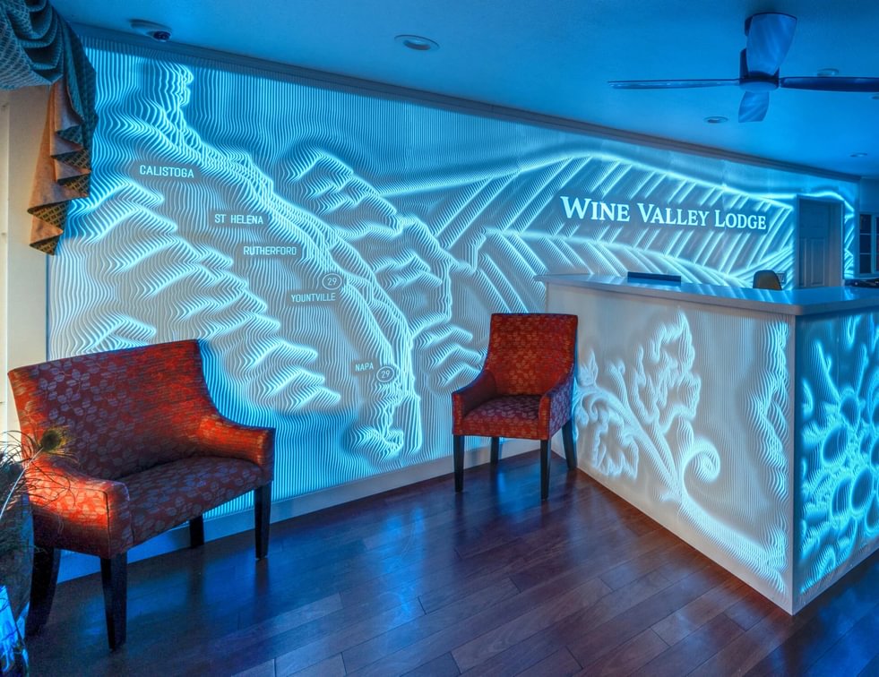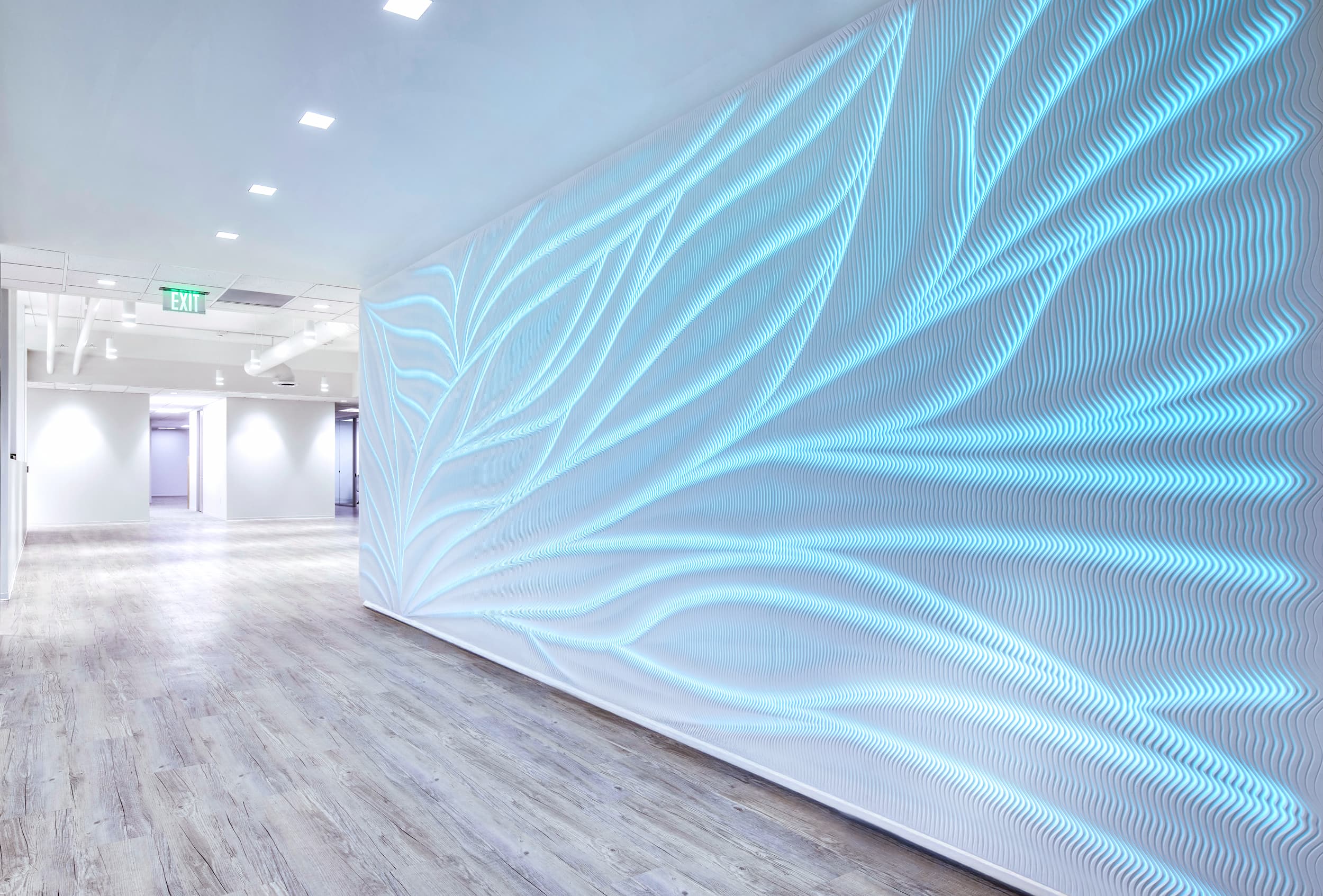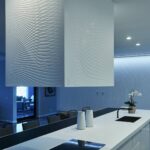 Select Corian® Solid Surface colors allow light to pass through the material, enabling integrated LED systems behind carved sheets. In these installations, light becomes part of the architecture rather than a separate fixture.