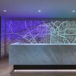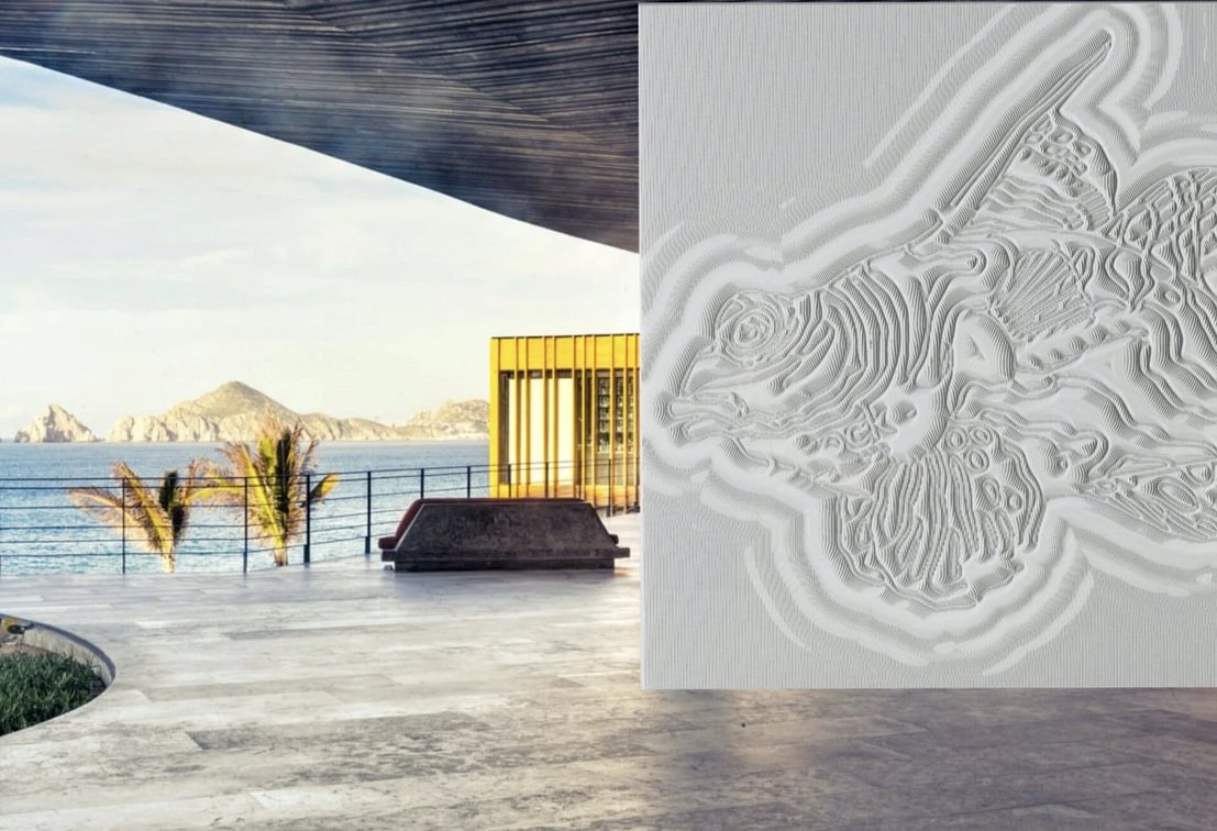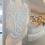 At the core of M|R Walls is a library of digitally developed motifs that range from precise geometric compositions to organic patterns inspired by nature, topography, and urban networks. These patterns are carved directly into the Corian®, creating dimensional surfaces that interact with light and shadow throughout the day. For designers, motifs offer a way to embed storytelling directly into the architecture.