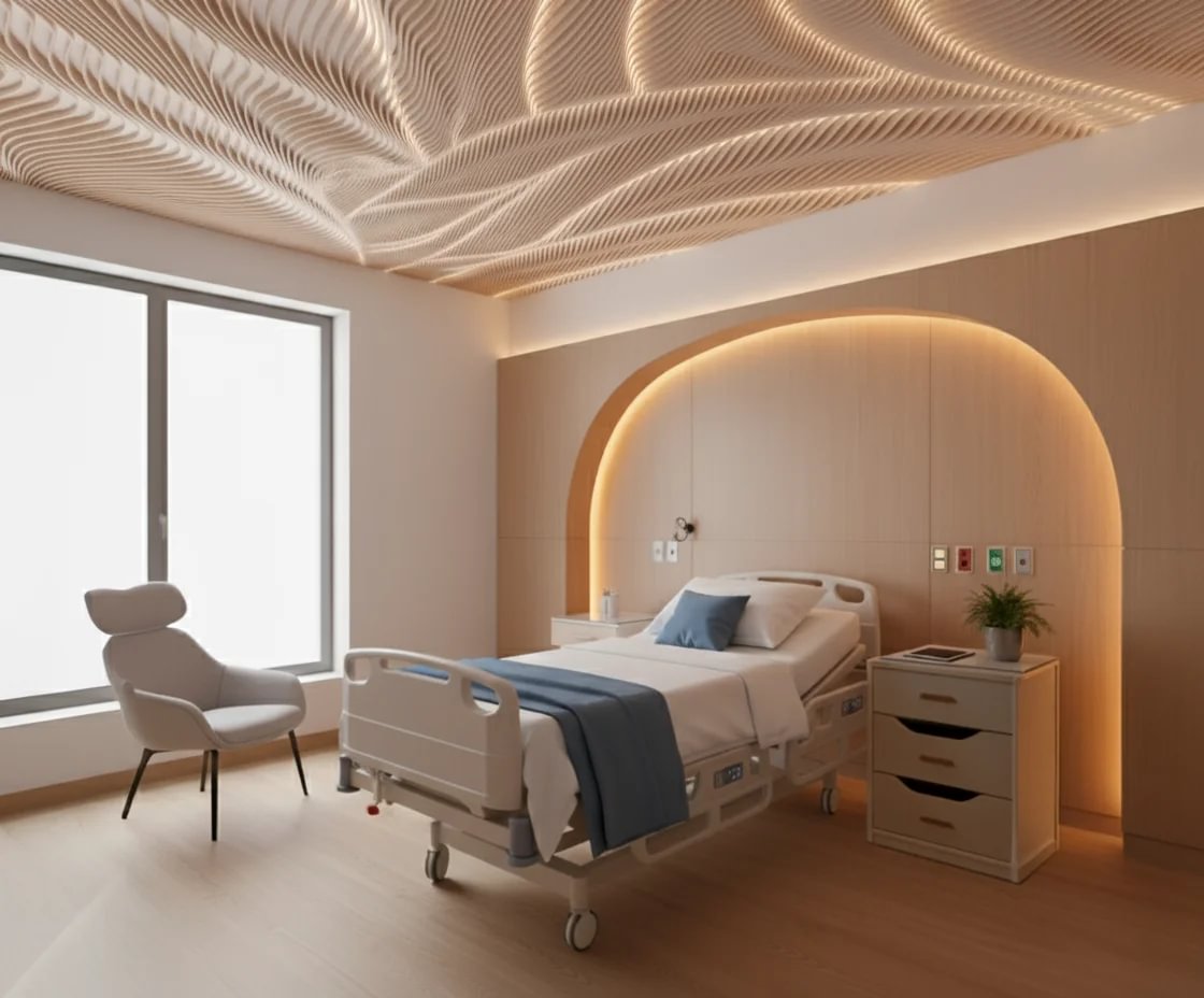 Healthcare designers often face the challenge of balancing infection control with environments that feel welcoming and calming. Corian® Solid Surface offers a seamless, nonporous surface that supports strict hygiene requirements, while M|R Walls introduces visual warmth through texture and light. These installations soften clinical spaces while maintaining durability and long-term performance.