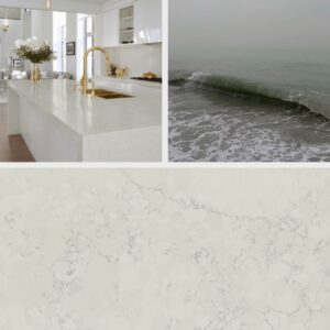 Coastal Haze is a cooler, grey-influenced option. It retains a classic appeal, with a combination of veins, both cool and warm, that allow for options, especially with cooler white cabinetry and blues, as well as stained colors.