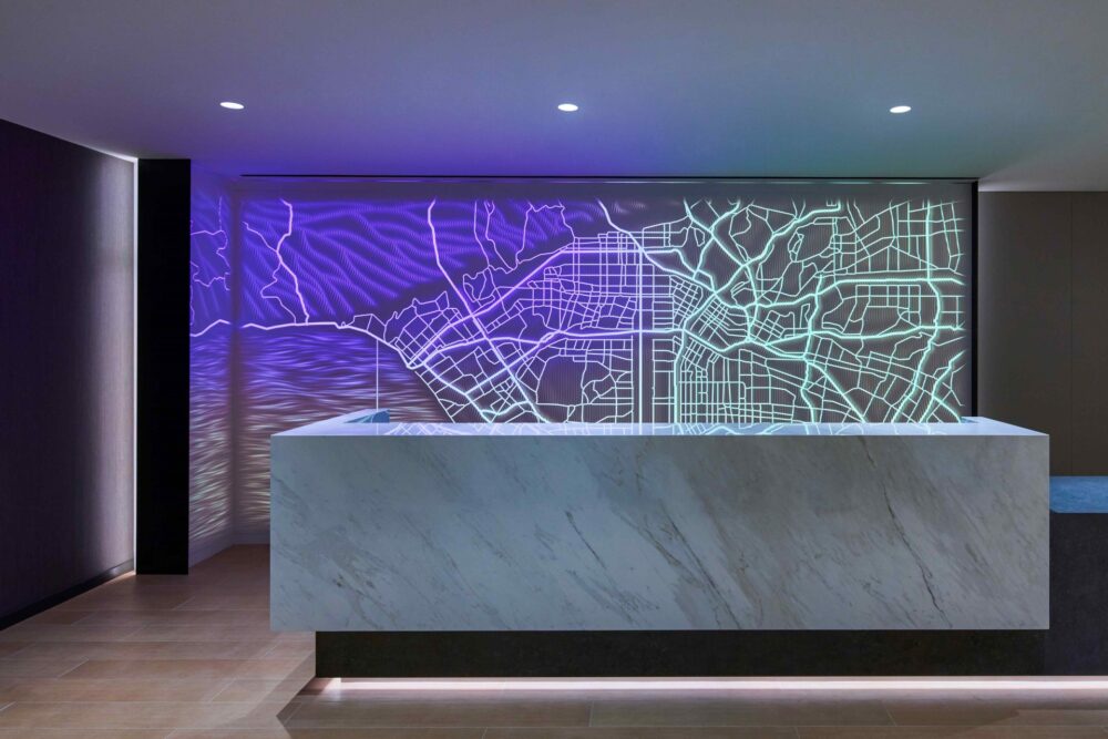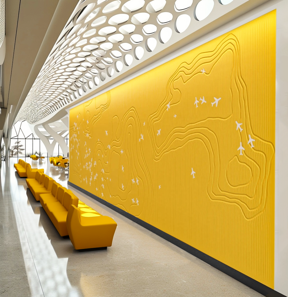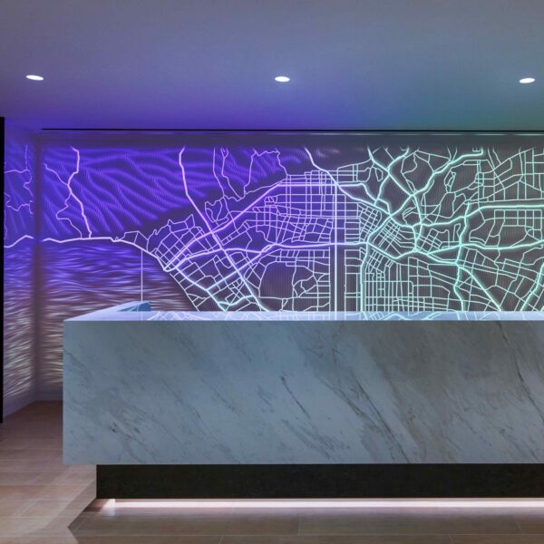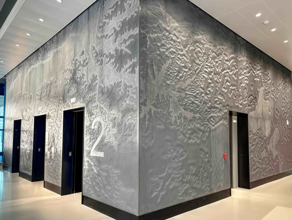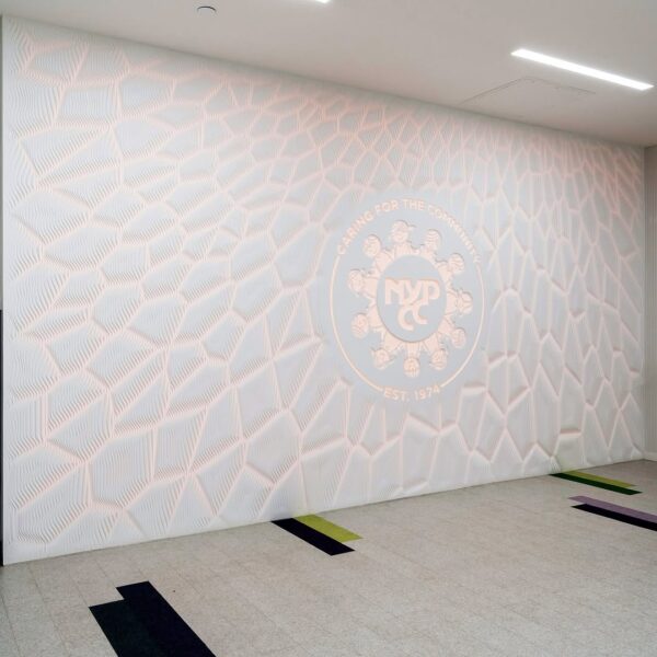 M|R Walls exclusively uses Corian Solid Surface for its superior ability to seamlessly bond multiple pieces together to create large-scale designs. Corian Solid Surface also offers an extensive color palette, and is durable, non-porous and easy to clean.