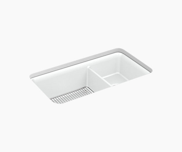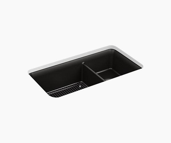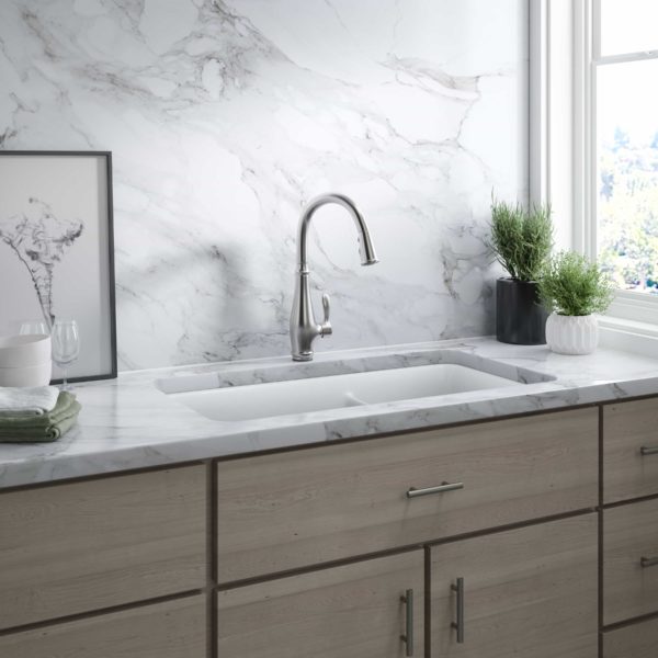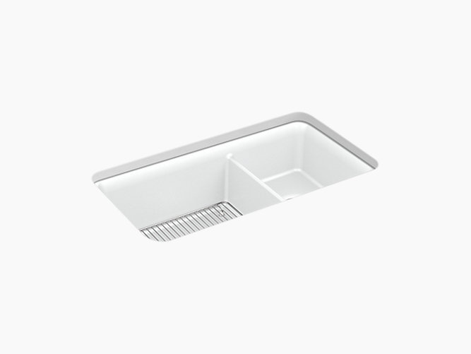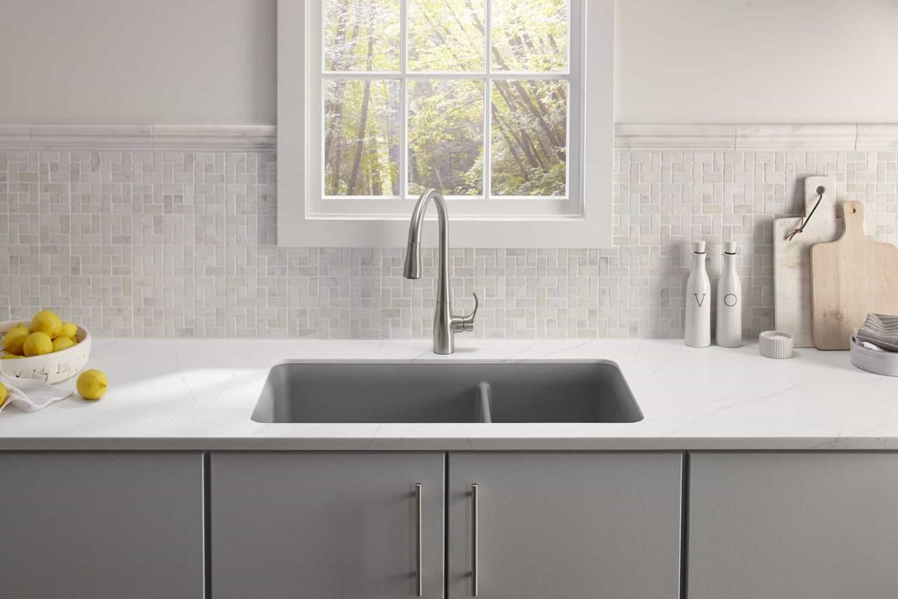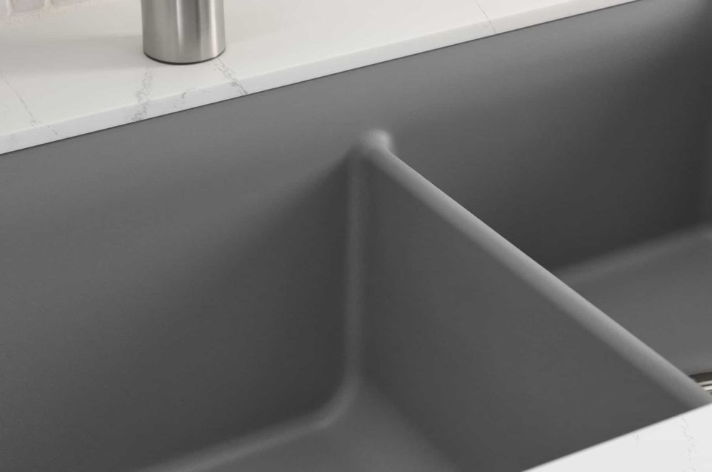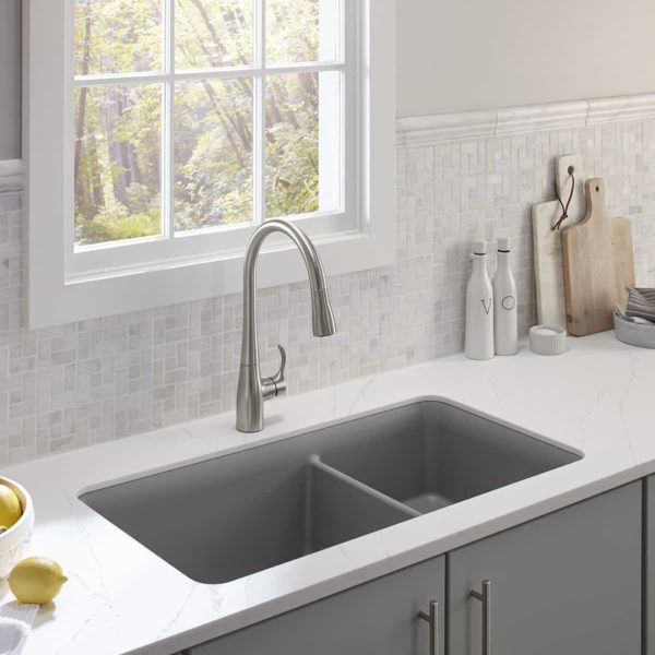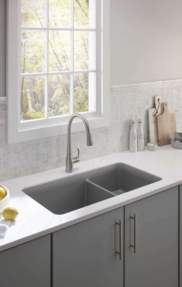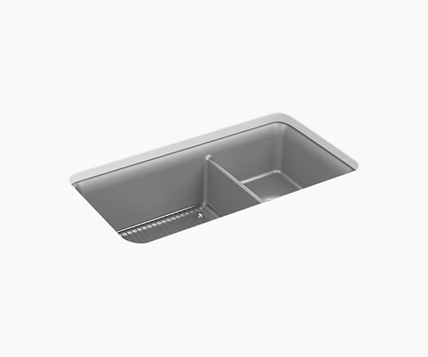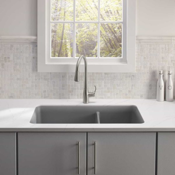 With soft French curves, the Cairn sink offers transitional style to suit contemporary and traditional kitchens alike. The Cairn sink is made of KOHLER Neoroc®, a matte-finish composite material designed for extreme durability and unmatched beauty. Richly colored to complement any countertop, Neoroc resists scratches, stains, and fading and is highly heat- and impact-resistant.