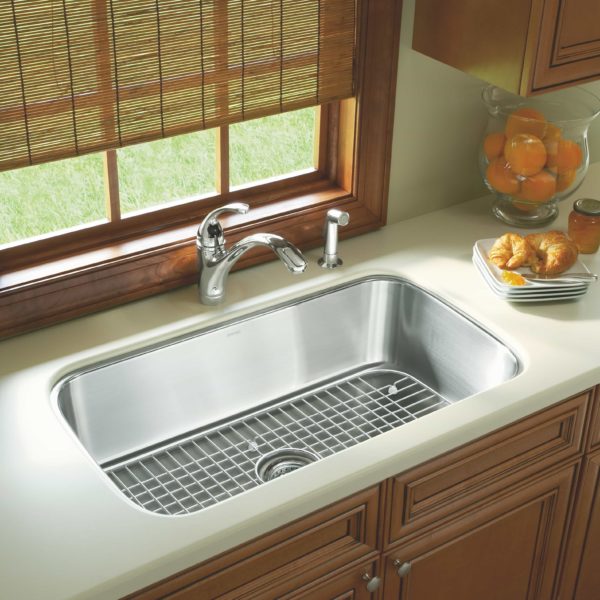 With the classic look of stainless steel and a pared-down design, the McAllister kitchen sink is an ideal backdrop for nearly any kitchen design. It offers ample workspace and SilentShield® technology, an exclusive sound-absorbing system that reduces noise and vibration.